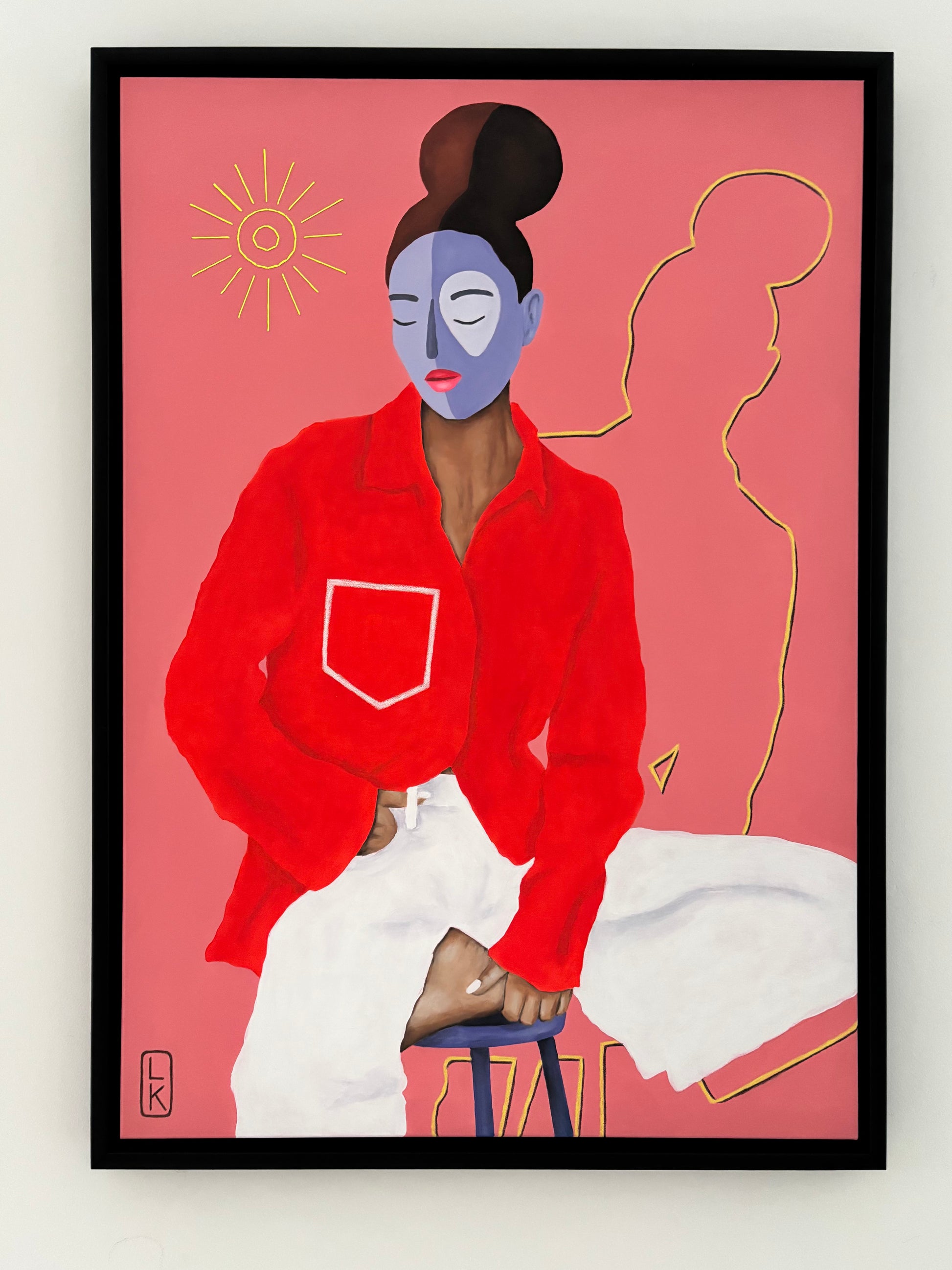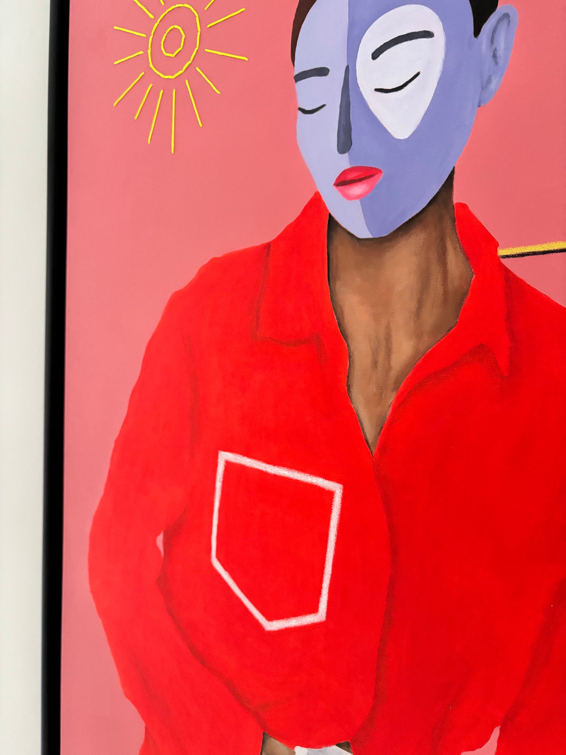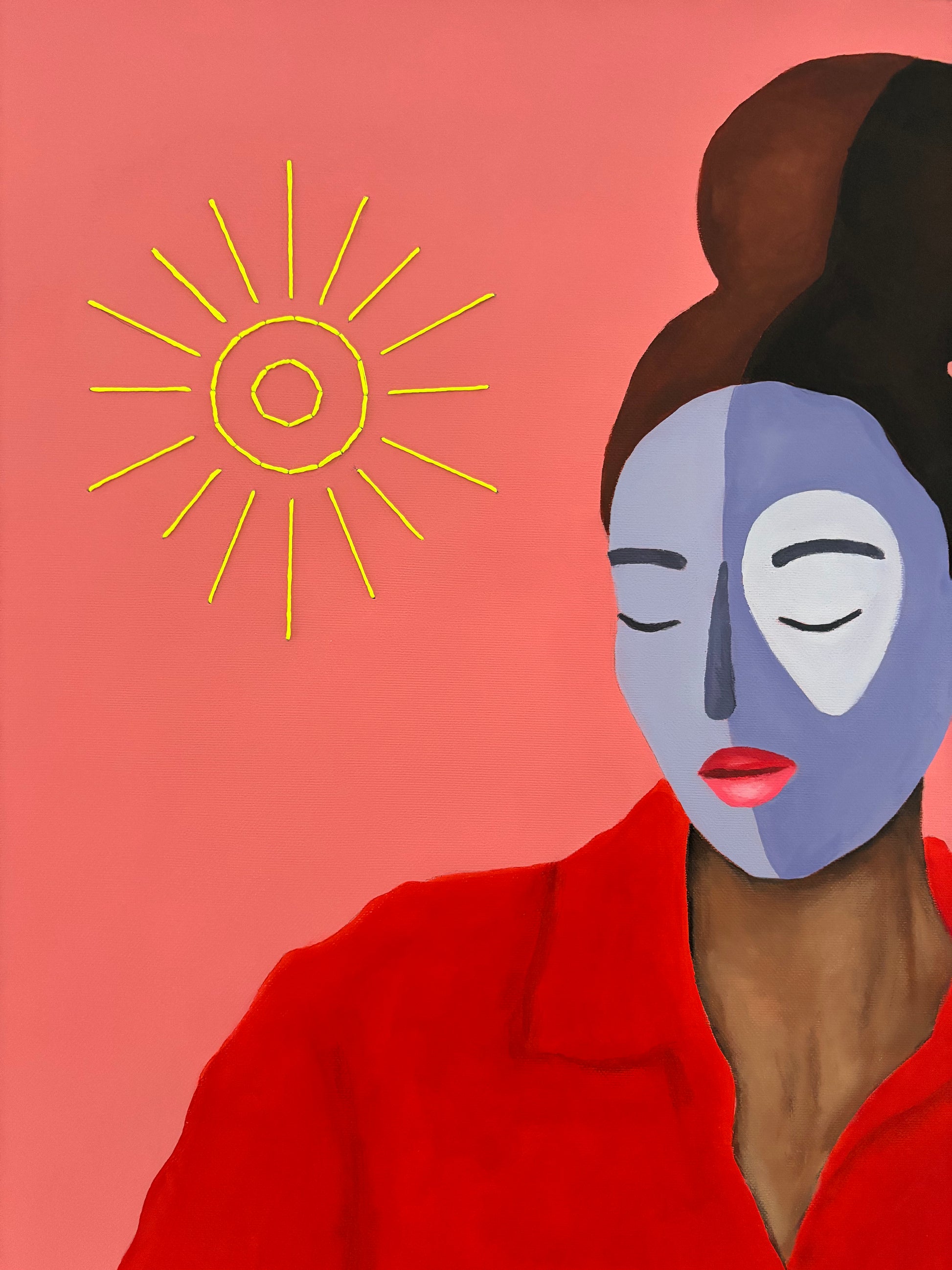 In mijn huidige werk ontdek je vrouwen die balanceren tussen kwetsbaarheid en kracht: gesloten ogen symboliseren hun innerlijke wereld, levendige kleuren roepen hun kracht en groei op. Intuïtief geschilderd met acryl, soms gecombineerd met gouache, oliepastel, potlood en hand gestikte details.