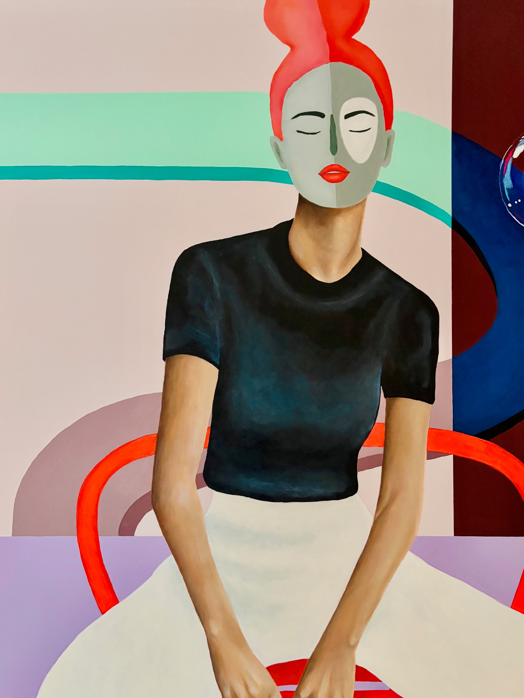 In mijn huidige werk ontdek je vrouwen die balanceren tussen kwetsbaarheid en kracht: gesloten ogen symboliseren hun innerlijke wereld, levendige kleuren roepen hun kracht en groei op. Intuïtief geschilderd met acryl, soms gecombineerd met gouache, oliepastel, potlood en hand gestikte details.
