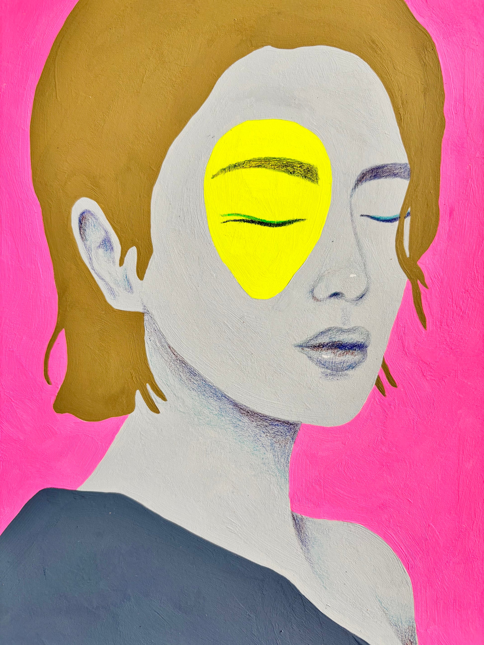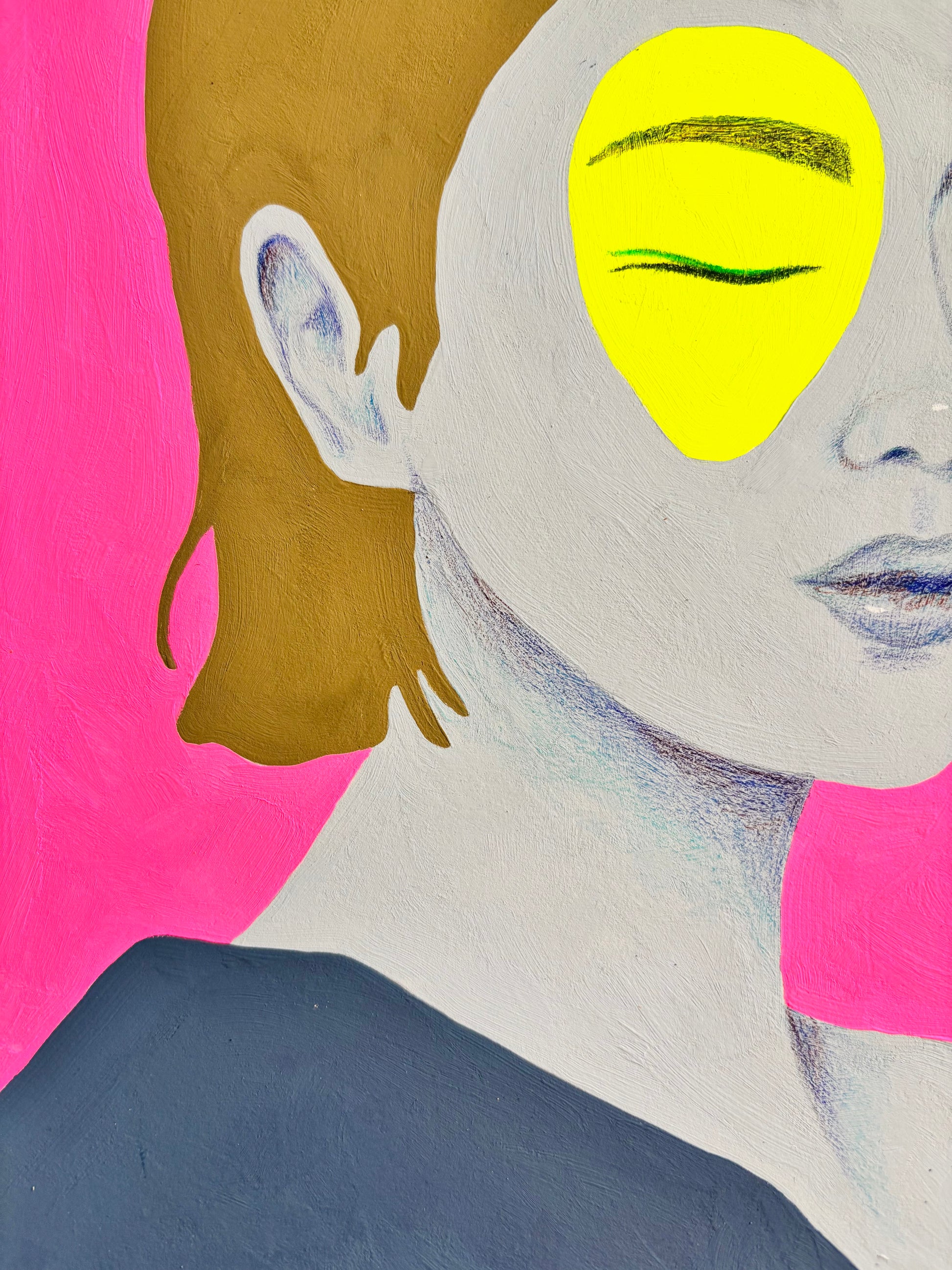 Een intuïtief, handgemaakt zielsportret waarin kracht, groei en kwetsbaarheid samenkomen. Gemaakt met acrylic gouache en potlood op Arches papier.