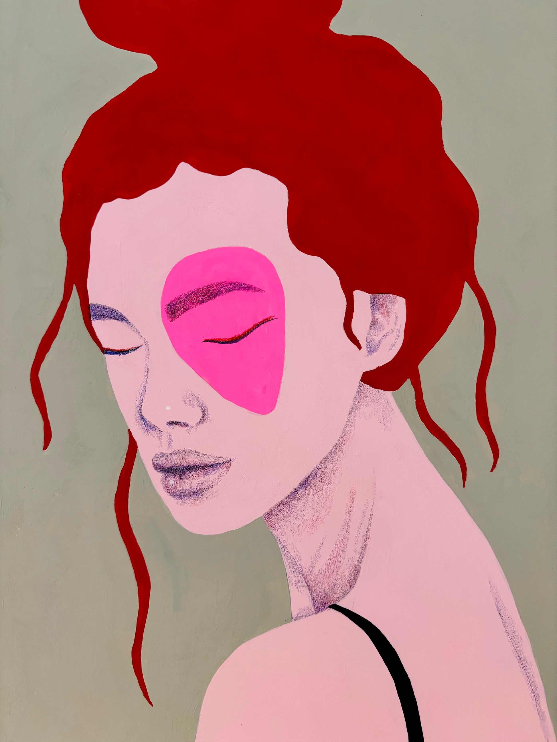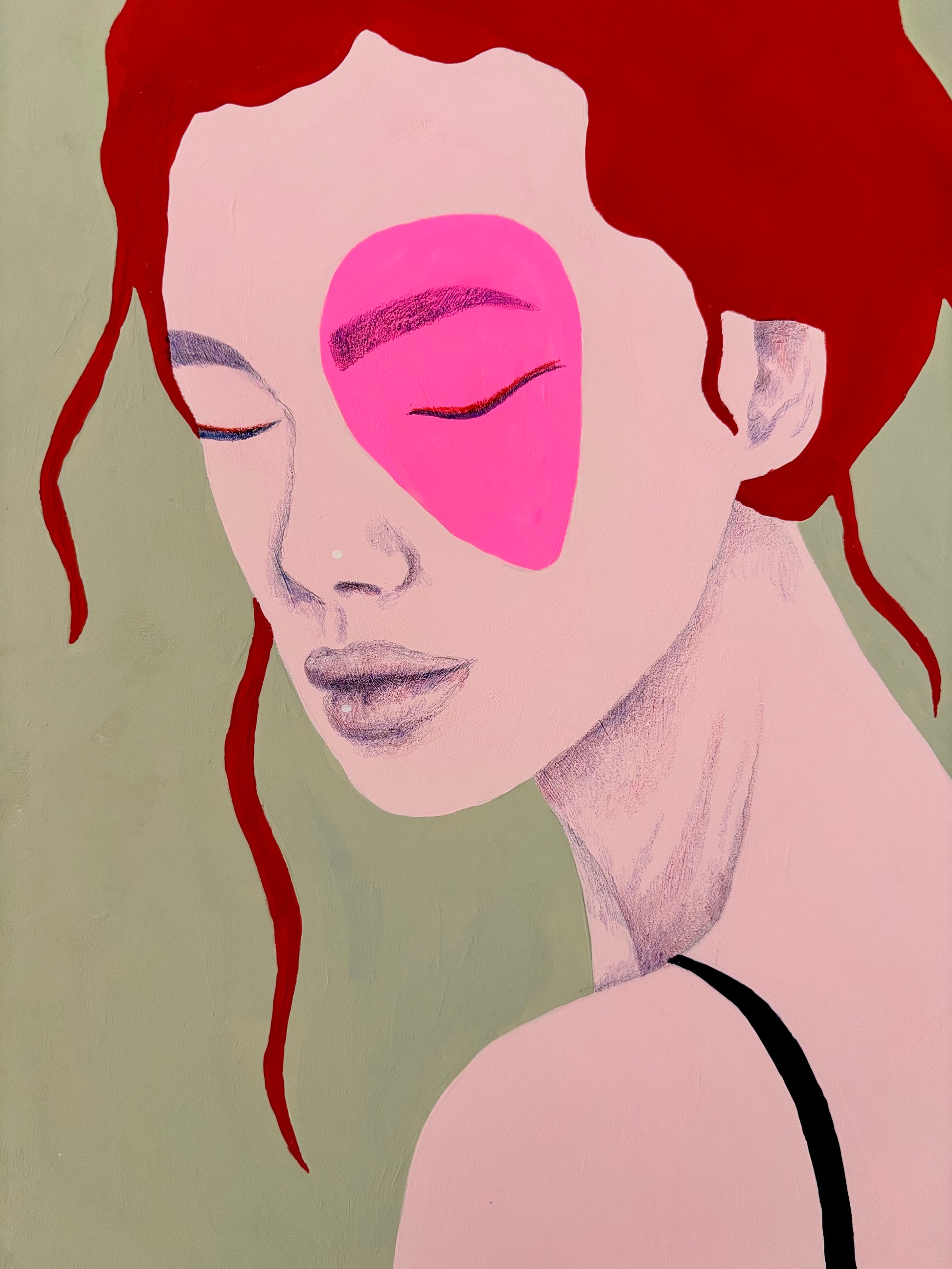 Een intuïtief, handgemaakt zielsportret waarin kracht, groei en kwetsbaarheid samenkomen. Gemaakt met acrylic gouache en potlood op Arches papier.