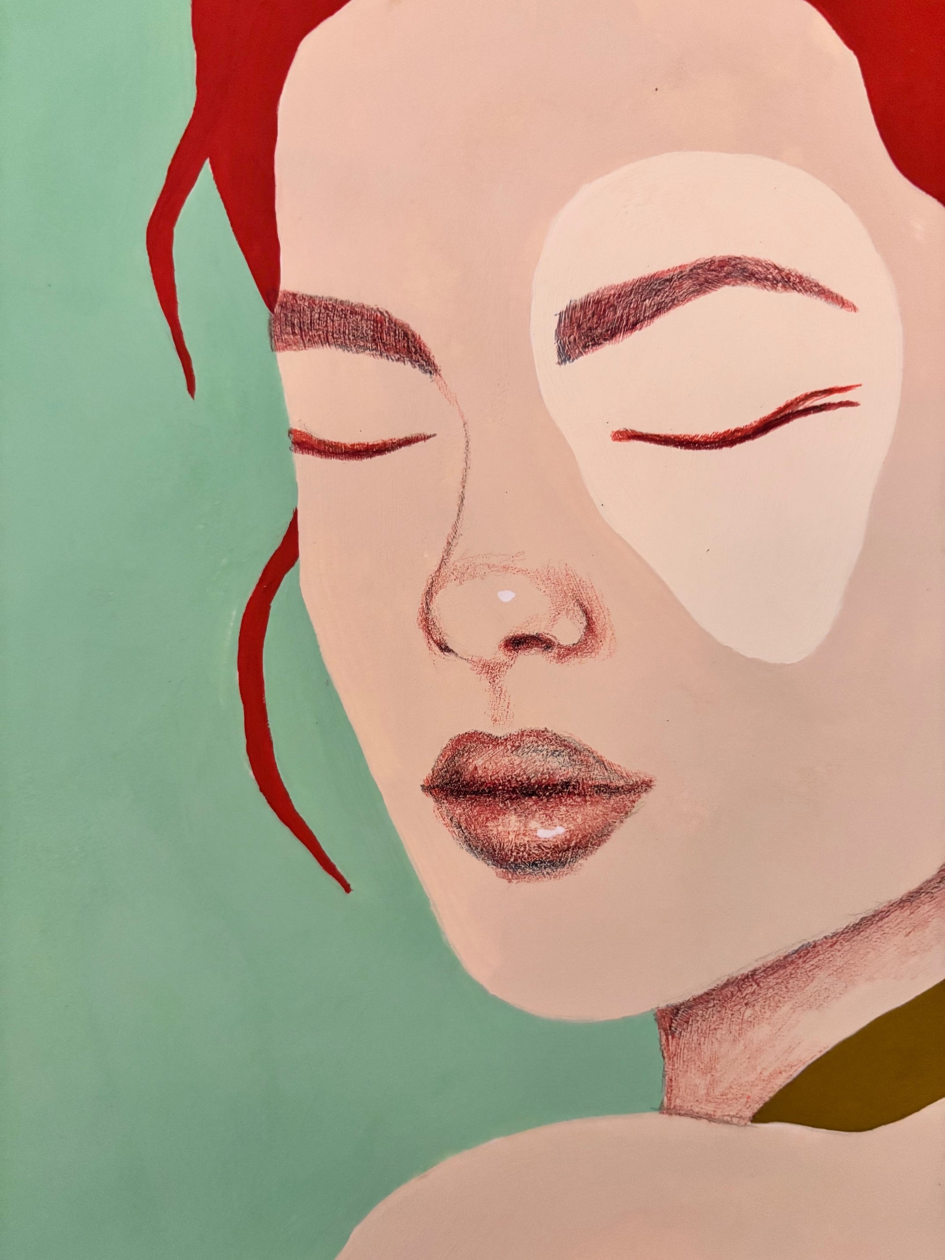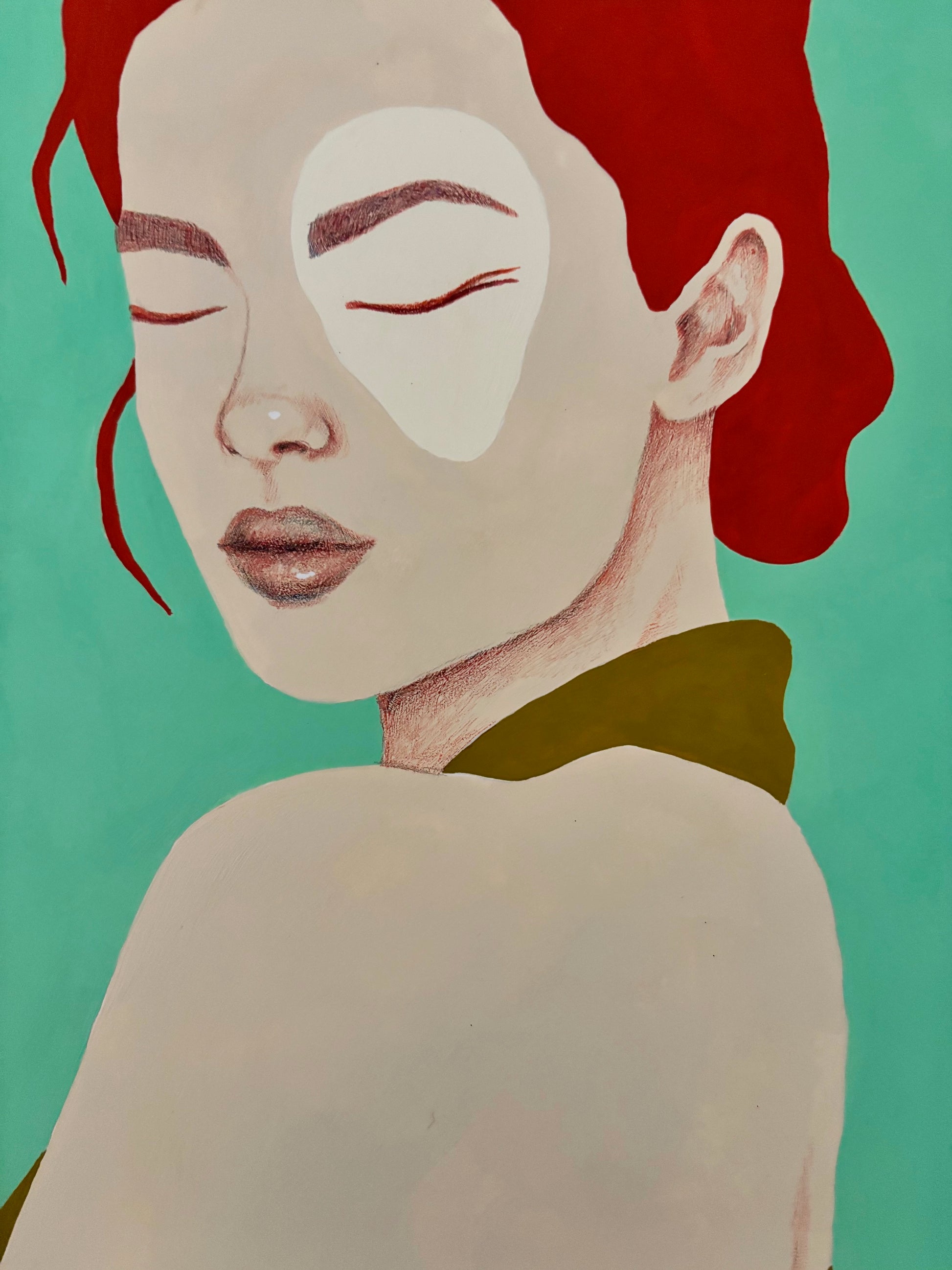 Een intuïtief, handgemaakt zielsportret waarin kracht, groei en kwetsbaarheid samenkomen. Gemaakt met acrylic gouache en potlood op Arches papier.